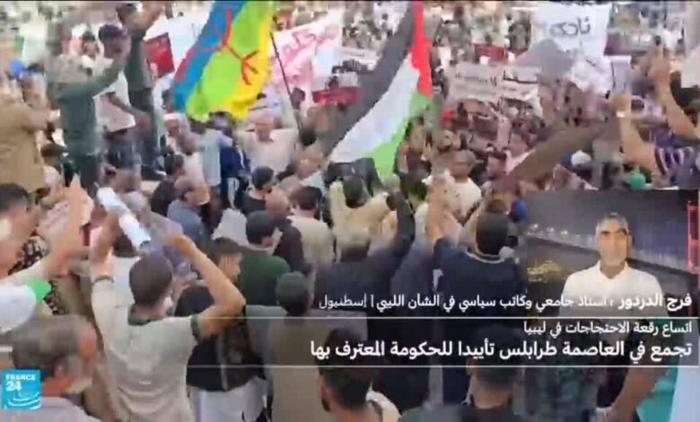 بعد حوالى أسبوع من المظاهرات ضد حكومة الدبيبية.. المئات من الليبيين تظاهروا اليوم في العاصمة الليبية طرابلس للتعبير عن دعمهم لحكومة الوحدة الوطنية.