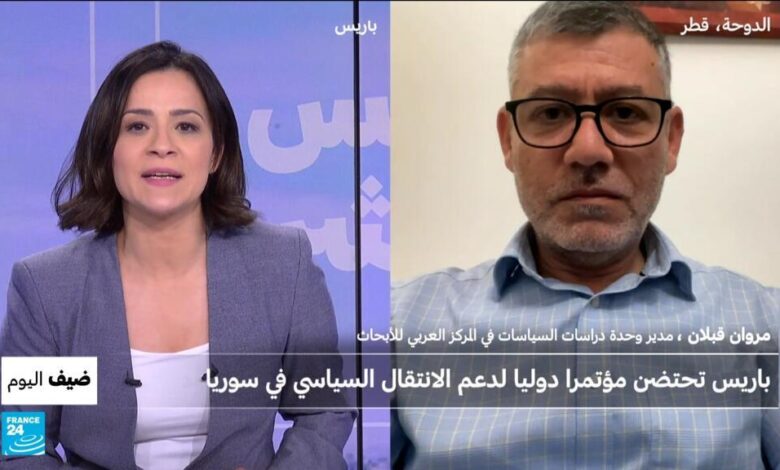 تستضيف العاصمة الفرنسية باريس مؤتمرا حول سوريا بمشاركة وزير الخارجية السوري أسعد الشيباني الذي قال بالأمس إن سلطات بلاده تعتزم تشكيل حكومة انتقالية مطلع الشهر المقبل، وتعهّد أن تكون “ممثلة للشعب السوري قدر الإمكان وتراعي تنوعه”. كيف من المتوقع أن تكون ملامح هذه الحكومة السورية المقبلة؟ للحديث عن هذا الموضوع نستضيف مدير وحدة دراسات السياسات في المركز العربي للأبحاث الأستاذ مروان قبلان.