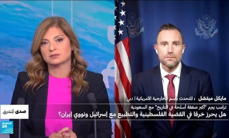الرئيس ترامب يختار الرياض مجددا كمحطة لزيارته الرسمية الخارجية الأولى ويوقع صفقة بيع أسلحة وصفها البيت البيض بـ”الأكبر في التاريخ” ولكن هل ينجح الرئيس الأمريكي بإحراز خرق في السياسة حيال القضايا الساخنة في المنطقة من حرب غزة والنووي الايراني، ضيف صدى المشرق المتحدث باسم الخارجية الأمريكية مايكل ميتشل.