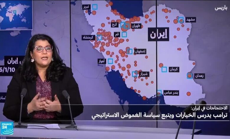 الاحتجاجات في إيران تدخل أسبوعها الثالث وسط اتساع رقعتها خلال نهاية الأسبوع. آخر التقارير في الصحف الغربية تشير إلى مقتل 500 متظاهر على الأقل وهو الأمر الذي حذر منه الرئيس الأمريكي دونالد ترامب وهو بصدد دراسة خيارات للتدخل وفق صحيفة وول ستريت جورنال. وقد يشمل ذلك التدخل استهداف مسؤولين إيرانيين أو القيام بعمليات سيبرانية أو ضرب منشآت إيرانية. وذلك ما تريده إسرائيل التي لا تخفي سعيها إلى إسقاط النظام الإيراني. ما هو هامش التحرك بالنسبة للنظام الإيراني؟ ولماذا يتأنى الرئيس الأمريكي قبل أن يتدخل في إيران؟ المزيد في هذا التحليل الإخباري.