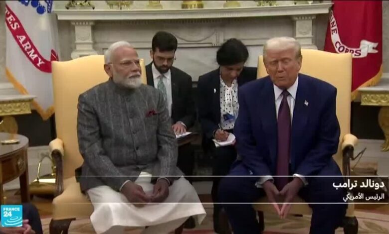 قال الرئيس الأمريكي دونالد ترامب أمس الخميس إن رئيس الوزراء الهندي ناريندرا مودي عرض بحث تخفيف الرسوم الجمركية وشراء المزيد من النفط والغاز والطائرات المقاتلة الأمريكية، إلى جانب تنازلات محتملة لم تنهي بعد خلافات تجارية. جاء ذلك خلال محادثات الزعيمين في البيت الأبيض، بعد ساعات فقط من انتقاد ترامب للمناخ الذي تعمل فيه الشركات الأمريكية في الهند وكشفه عن خطط لفرض تعريفات على كل دولة تفرض رسوما جمركية على الواردات الأمريكية.