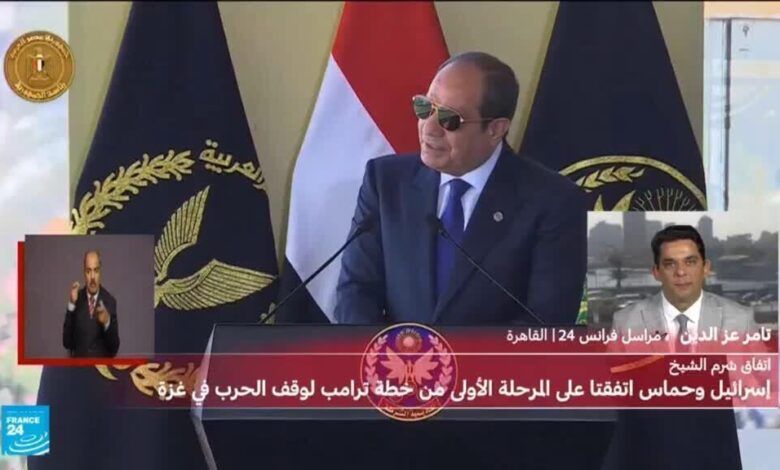رحّب الرئيس المصري عبد الفتاح السيسي الخميس بالإعلان عن “اتفاق لوقف إطلاق النار وإنهاء الحرب في غزة بعد عامين من المعاناة”. ورأى أن “العالم شهد لحظة تاريخية تُجسّد انتصار إرادة السلام على منطق الحرب” بالتوصل إلى الاتفاق بعد أيام من المحادثات في مصر، مشددا على أنه “لا يطوي صفحة حرب فحسب، بل يفتح باب الأمل لشعوب المنطقة في غدٍ تسوده العدالة والاستقرار”.