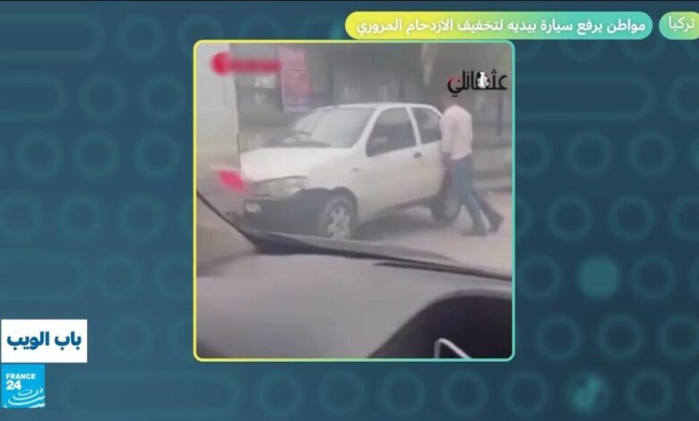 تركيا.. مواطن يرفع سيارة بيديه لتخفيف الازدحام المروري!