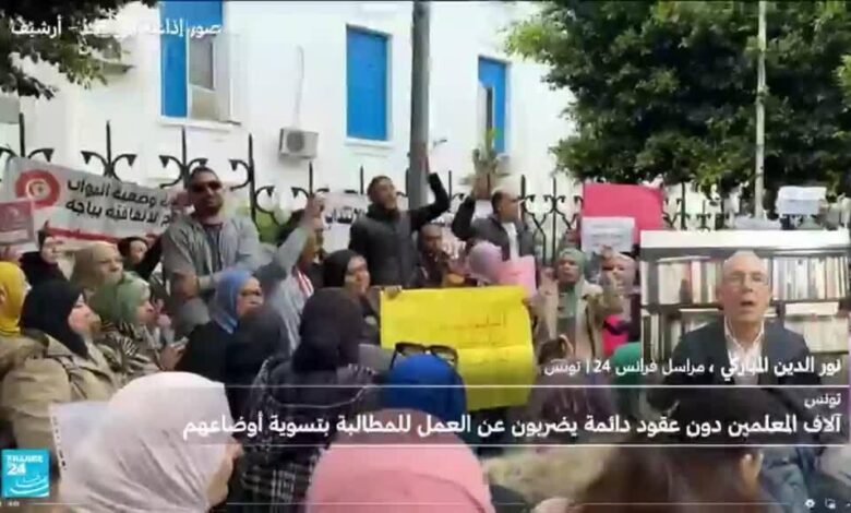 تونس: آلاف الأساتذة والمعلمين من دون عقود دائمة يضربون عن العمل للمطالبة بتسوية أوضاعهم