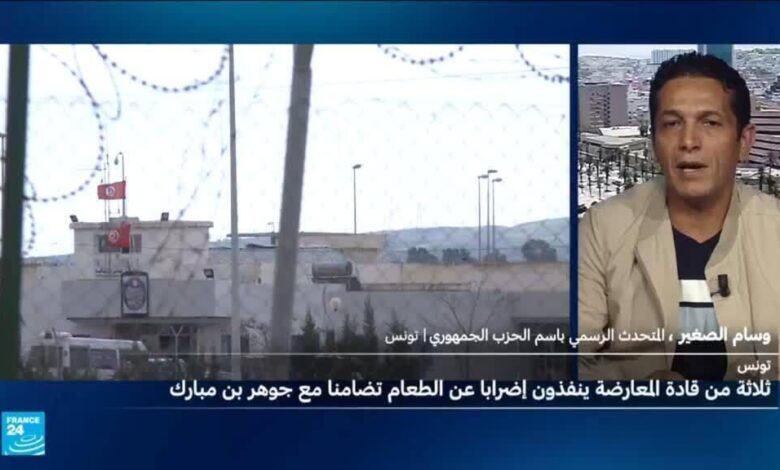 أعلن معارضون تونسيون بارزون، بينهم رئيس حركة النهضة راشد الغنوشي، الإضراب عن الطعام تضامنا مع سياسي مسجون يقولون إن صحته تدهورت بشدة بعد تسعة أيام من بدء إضرابه عن الطعام. وبدأ جوهر بن مبارك، أحد مؤسسي جبهة الخلاص الوطني، تحالف المعارضة الرئيسي في تونس، إضرابا عن الطعام والماء والدواء الأسبوع الماضي احتجاجا على ظروف اعتقاله. وحكم على بن مبارك بالسجن 18 عاما بتهمة “التآمر ضد أمن الدولة” و”الانتماء إلى جماعة إرهابية”، في محاكمة جماعية انتقدتها منظمات حقوق الإنسان.