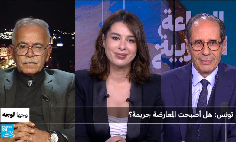 في وجها لوجه تتوقف دنيا نوار عند الوضع الحقوقي في تونس بعد اعتقالات وأحكام بالسجن ضد معارضين وحقوقيين مع الضيفين من تونس العاصمة عضو المكتب السياسي لحركة تونس إلى الأمام مكلف بالإعلام أحمد الملولي والنائب البرلماني التونسي السابق والناشط سياسي سفيان المخلوفي.