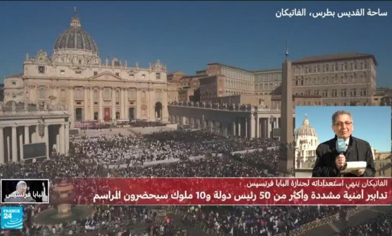 أنهى الفاتيكان استعداداته لجنازة البابا فرنسيس التي تُقام صباح السبت في ساحة القديس بطرس في روما والتي أغلِقت أمام الجمهور بعد ثلاثة أيام توافد فيها المؤمنون من مختلف أقطار العالم لإلقاء النظرة الأخيرة على الحبر الأعظم.