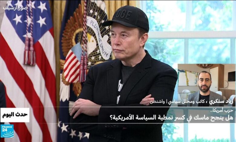 في حدث اليوم حزب أمريكا الذي أنشأه إيلون ماسك محاولا قطع الثنائي التقليدي القائم للحزبين الديمقراطي والجمهوري. ما هي خلفية الملياردير الذي تحالف مع ترامب ثم اختلف معه؟ ضيف حدث اليوم: الكاتب والمحلل السياسي، زياد سنكري.