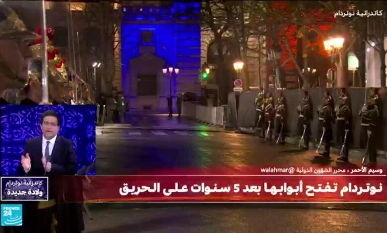 أعادت كاتدرائية نوتردام في باريس فتح أبوابها مساء السبت بعد أكثر من خمسة أعوام من الحريق الذي اندلع فيها عام 2019، وذلك في حضور أربعين رئيس دولة وحكومة يتقدمهم الرئيسان إيمانويل ماكرون ودونالد ترامب.وأعيد فتح الأبواب في الساعة 19,21 (18,21 ت غ) بعدما ضرب رئيس أساقفة باريس لوران أولريش عصاه الراعوية ثلاث مرات مستخدما صليبا.