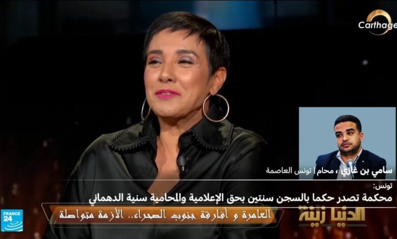 قضت محكمة تونسية الاثنين بسجن المحامية والإعلامية البارزة سنية الدهماني سنتين في قضية جديدة تتعلق بتصريحات انتقدت فيها العنصرية في تونس، على ما أفاد محاميها. وقال المحامي سامي بن غازي: “قضت المحكمة بالسجن سنتين في حق سنية الدهماني” استنادا للمرسوم عدد 54 لمكافحة “الأخبار الكاذبة”.