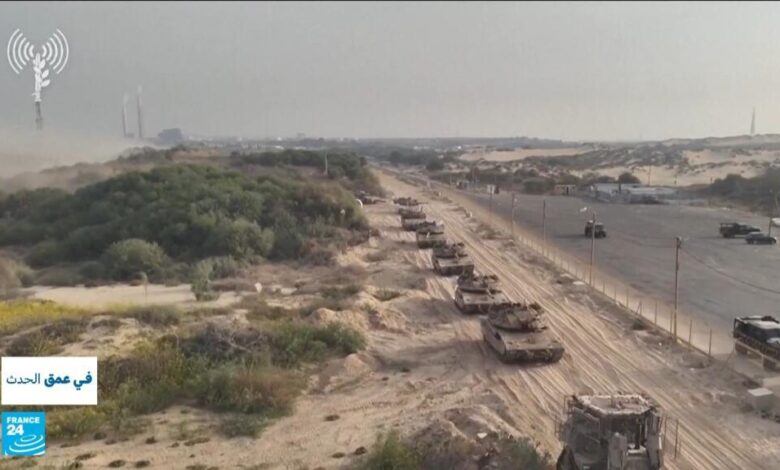 فيما لا يزال نحو أربعمئة ألف مدني فلسطيني في شمال قطاع غزة غير ممتثلين لأوامر الجيش الإسرائيلي بالإخلاء، يرابط إسرائيليون عند الحدود استعدادا للاستيطان كما يقولون. فهل تدور معركة الحسم في شمال القطاع؟ وما فحوى “خطة الجنرالات”؟ التفاصيل في تقرير مراسلة فرانس24 كلير دوهاميل والزملاء في “Real Gaza Production”.