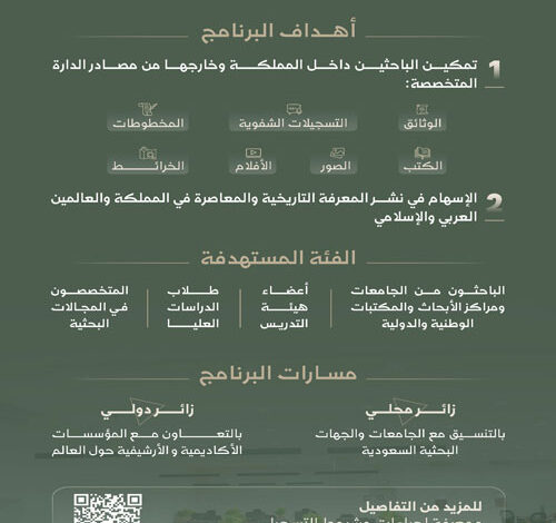 دارة الملك عبدالعزيز تطلق برنامج «الباحث الزائر»