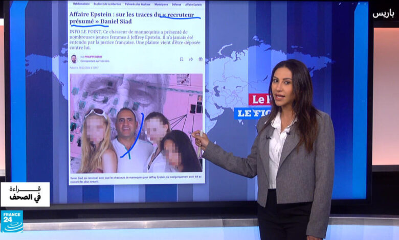 في عناوين الصحف اليوم: هزات جديدة لزلزال إبستين يهز أركان الخارجية الفرنسية مع عودة اسم الدبلوماسي الفرنسي السابق لدى الأمم المتحدة ” فابريس آيدان” إلى واجهة الاتهامات وإحالة ملفه من قبل وزير الخارجية “جان نويل بارو” إلى القضاء – من هو الذراع الأيمن لجيفري إبستين في فرنسا؟ تحقيق جديد حول “دانيال عمار سياد”، صياد عارضات الأزياء الذي ولد في الجزائر وهاجر إلى السويد – نشرت النيابة العامة في غرونوبل ملف قضية “جاك لوفوغل” المتهم باغتصاب 89 قاصرا من الذكور في تسع دول منها المغرب والجزائر وسويسرا – زيارة نتنياهو إلى ترامب في الولايات المتحدة الأمريكية واستراتيجية واشنطن الجديدة لطمأنة إسرائيل والضغط على إيران.