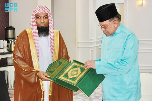 استقبل دولة رئيس وزراء ماليزيا داتؤ سري أنوار إبراهيم، فضيلة إمام وخطيب المسجد النبوي الشريف الشيخ الدكتور صلاح بن محمد البدير، في إطار زيارته الرسمية إلى ماليزيا للمشاركة في أعمال ندوة القرآن الكريم العالمية.