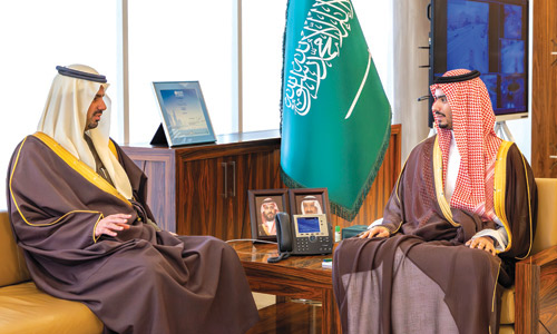 استقبل صاحب السمو الملكي الأمير راكان بن سلمان بن عبدالعزيز محافظ الدرعية، في مكتبه بالمحافظة أمس، صاحب السمو الأمير الدكتور فيصل بن عبدالعزيز بن عياف أمين منطقة الرياض.