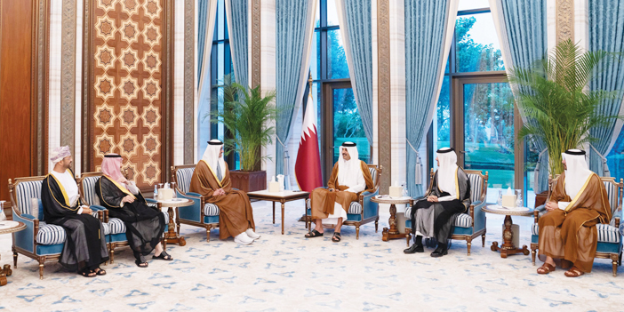 استقبل صاحب السمو الشيخ تميم بن حمد آل ثاني أمير دولة قطر، في الديوان الأميري بالعاصمة القطرية الدوحة أمس صاحب السمو الأمير فيصل بن فرحان بن عبدالله وزير الخارجية، وأصحاب السمو والمعالي والسعادة وزراء خارجية دول مجلس التعاون لدول الخليج العربية، بحضور معالي أمين عام المجلس