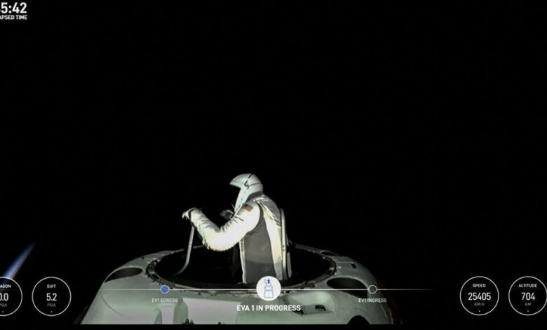 في نهاية المطاف وبعدما أرجئ إقلاعها مرات عدة، بدأ رواد مركبة “سبايس إكس” الخميس مهمتهم الفضائية “بولاريس دون” Polaris Dawn وخرجوا في أول عملية سير وتجول في الفضاء لرواد غير محترفين، وهو ما يمثل محطة مفصلية جديدة في الاستكشاف التجاري للفضاء. وعلى ارتفاع 700 كيلو متر من الأرض، خرج اثنان من الرواد هما الملياردير الأمريكي جاريد إيزاكمان والموظفة في “سبايس إكس” سارة غيليس للتجول ببزات “سبايس إكس” الجديدة بينما ظل الرائدان الآخران في المركبة للتأكد من سير العملية على ما يرام.