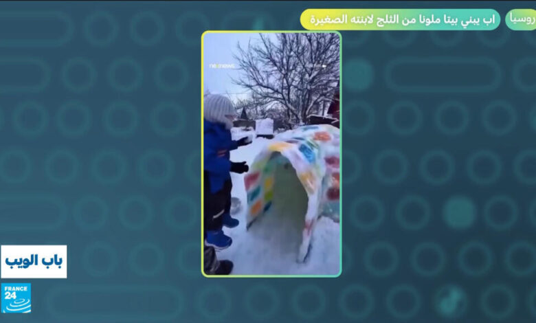 روسيا.. أب يبني بيتا ملونا من الثلج لابنته الصغيرة!