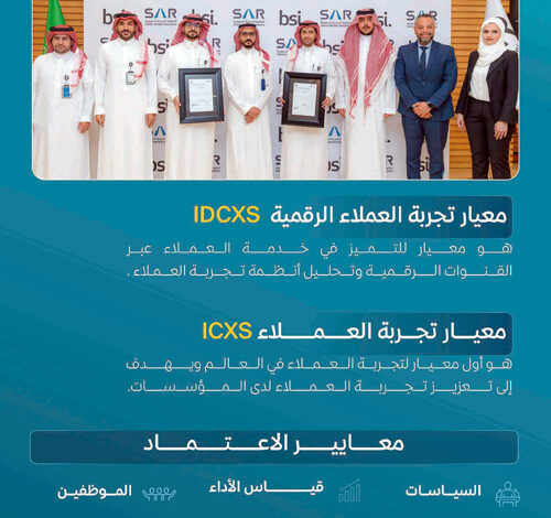 حصلت شركة الخطوط الحديدية السعودية «سار» على شهادة معيار تجربة العملاء (ICXS) وشهادة معيار تجربة العملاء الرقمية (IDCXS) التي يقدمها «المعهد البريطاني للمعاير» (BSI) كهيئة المعايير الوطنية للمملكة المتحدة والتي تضع معايير فنية حول مجموعة واسعة من المنتجات والخدمات منذ