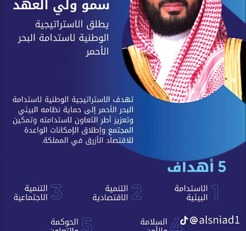 أطلق صاحب السمو الملكي الأمير محمد بن سلمان بن عبد العزيز آل سعود ولي العهد رئيس مجلس الوزراء رئيس مجلس الشؤون الاقتصادية والتنمية -حفظه الله- الاستراتيجية الوطنية لاستدامة البحر الأحمر، الهادفة لحماية النظام البيئي للبحر الأحمر، وتعزيز أطر التعاون لاستدامته، وتمكين المجتمع