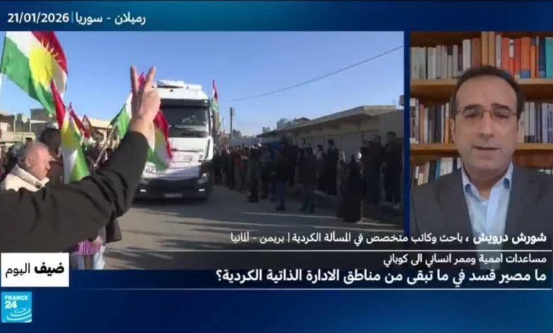 أعلنت الحكومة السورية وقوات سوريا الديمقراطية تمديد اتفاق وقف إطلاق النار بينهما لمدة 15 يوماً، في هذا السياق، نناقش اليوم مع ضيفنا شورش درويش، كاتب وباحث في المسألة الكردية، عدة محاور: كيف يمكن تقييم الوضع في كوباني بعد تمديد وقف إطلاق النار وفتح سلطات دمشق ممرات إنسانية؟ ما هي الخيارات المتاحة أمام قسد في ظل التطورات الأخيرة، وهل هناك احتمالية لعملية عسكرية جديدة؟ هل نواجه نهاية فعلية لمشروع الإدارة الكردية الذاتية في سوريا؟ وما الذي حصلت عليه واشنطن مقابل تخليها عن قسد؟