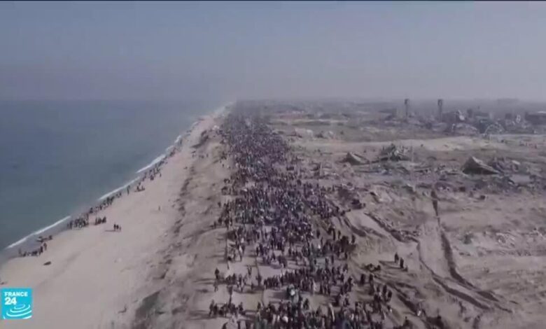 تدفق عشرات الآلاف من الفلسطينيين على الطريقين الرئيسيين المؤديين إلى شمال قطاع غزة حاملين مشاعر متباينة من الفرح بالعودة إلى ديارهم بعد العيش في ملاجئ مؤقتة لأشهر والخوف من رؤية ما تبقى لهم من أنقاض بعد قصف ديارهم.