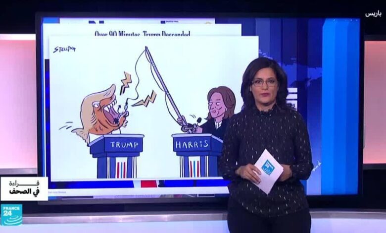 اهتمت الصحف اليوم بالمناظرة التلفزيونية التي جمعت بين المرشحين للانتخابات الرئاسية الأمريكية كامالا هاريس ودونالد ترامب . كما تساءلت الصحف كذلك عما إذا كانت إسرائيل تسعى إلى احتلال غزة بشكل ومحور فيلاديفيا بشكل دائم. وعلى الصعيد الفرنسي تتابع الصحف بقلق تعيين بارنييه رئيسا للوزراء والمشاورات الجارية لتشكيل الحكومة.