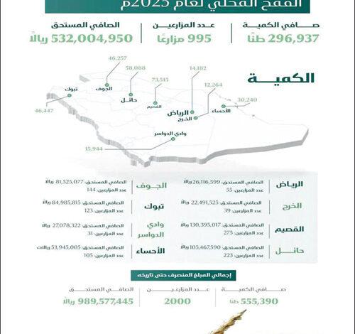 صرف 532 مليون ريال لمزارعي القمح المحلي
