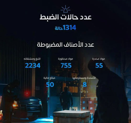 سجلت المنافذ الجمركية البرية والبحرية والجوية 1314 حالة ضبط للممنوعات، وذلك في إطار الجهود المستمرة التي تبذلها هيئة الزكاة والضريبة والجمارك لتعزيز الجانب الأمني وحماية المجتمع من الممنوعات بمختلف أنواعها وأشكالها.