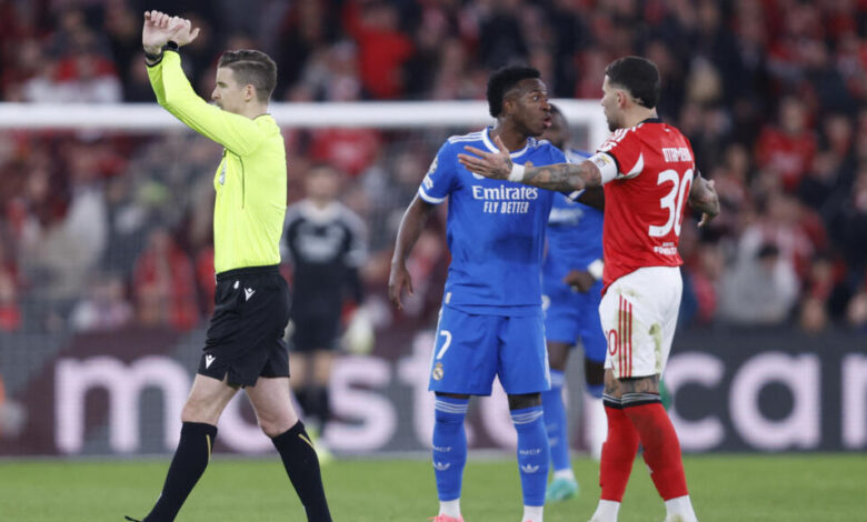 عاد الجدل حول العنصرية للواجهة بالملاعب الأوروبية في مباريات ملحق ثمن نهائي دوري أبطال أوروبا بعدما اتهم لاعب ريال مدريد البرازيلي فينيسيوس جونيور لاعب بنفيكا جيانلوكا بريستياني بتوجيه عبارات مسيئة له. وأوقف الحكم الفرنسي فرانسوا لوتكسييه المباراة 11 دقيقة في الشوط الثاني. وانتقد فينيسيوس “بروتوكول مكافحة العنصرية” في الاتحاد الأوروبي لكرة القدم “اليويفا” معتبرا أنه لا يفيد في شيء. وأعلن “اليويفا” الأربعاء أنه “سيحقق في مزاعم سلوك تمييزي” ضد فينيسيوس.