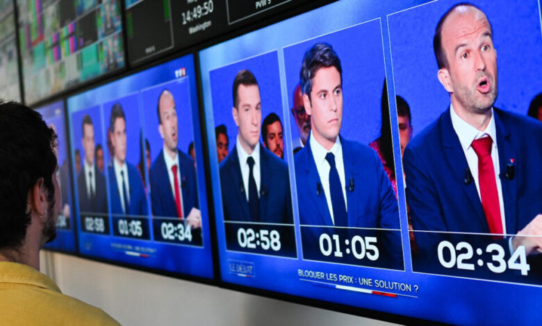 قبل خمسة أيام من الانتخابات التشريعية المرتقبة، ناقش كل من غابرييل أتال، وجوردان بارديلا، ومانويل بومبارد المواضيع الرئيسية في برامجهم في أول منظارة بينهما. وشملت النقاشات قضايا القوة الشرائية، والمعاشات التقاعدية، والأمن، وحتى الهجرة. وكانت محكمة الدولة قد رفضت سابقاً طلب الحزب الجمهوري (LR) بالمشاركة في المناظرة المتلفزة على قناة TF1.