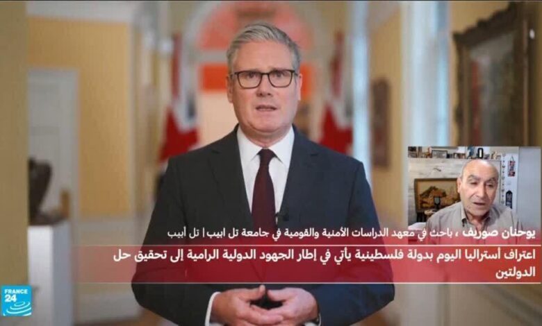 أثار قرار اعتراف بريطانيا وكندا وأستراليا الأحد بدولة فلسطينية انتقادات حادة في إسرائيل حيث دعا وزيران يمينيان متطرفان إلى الرد عليها بضم الضفة الغربية المحتلة، بعدما كان رئيس الوزراء بنيامين نتانياهو تعهد في وقت سابق الأحد بمواجهتها في الأمم المتحدة، معتبرا أن إقامة دولة فلسطينية يهدد وجود الدولة العبرية. الباحث في معهد الدراسات الأمنية والقومية بجامعة تل أبيب يوحنان صوريف بسط لفرانس24 تداعايات القرار والخيارات الممكنة لدى إسرائيل للرد على الخطوة.