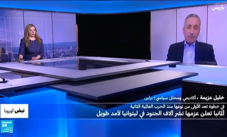اكثر من خمسة الاف جندي في اطار كتيبة مدرعة.. تستعد المانيا لنشرهم فوق اراضيها جارتها ليتوانيا. برلين اوضحت ان عملية الانتشار ستكون دائمة وستنتهي في غضون عام ونصف العام. حول الموضوع كان معنا من برلين الباحث السياسي خليل عزيمة