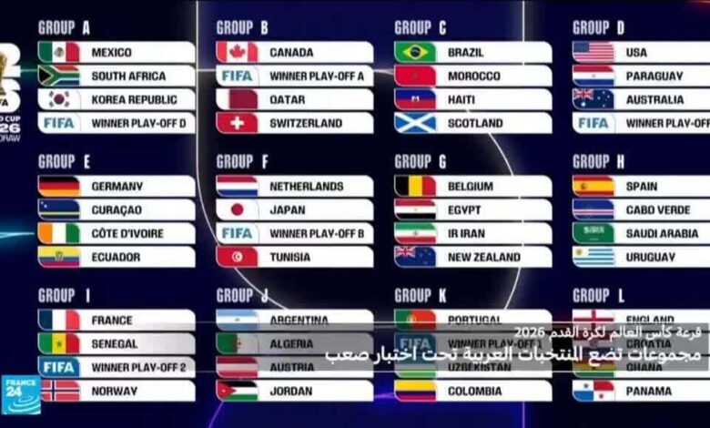قرعة كأس العالم 2026.. المنتخبات العربية في مجموعات صعبة