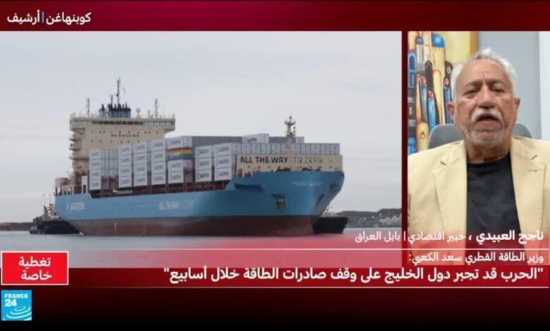 قالت فاينانشال تايمز نقلا عن وزير الطاقة القطري: نتوقع ارتفاع أسعار الغاز إلى 40 دولارا لكل مليون وحدة حرارية بريطانية، وأسعار النفط قد ترتفع إلى 150 دولارا للبرميل خلال أسبوعين إلى ثلاثة أسابيع، وقالت إن قطر تحذر من أن الحرب ستجبر دول الخليج على وقف صادرات الطاقة في غضون أسابيع. وقال وزير النقل الفرنسي فيليب تابارو الجمعة إن نحو 50 سفينة فرنسية عالقة حاليا في مياه الخليج، وثماني سفن أخرى في البحر الأحمر، في الوقت الذي تسعى فيه باريس إلى حشد الدعم لتشكيل تحالف دولي لتأمين حركة الملاحة في المنطقة.