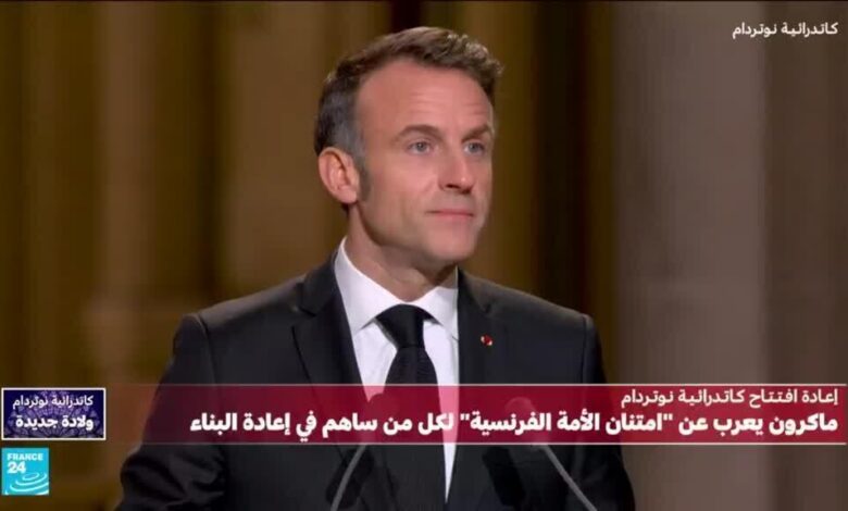 أعرب الرئيس الفرنسي إيمانويل ماكرون عن امتنان الأمة الفرنسية لكل من ساهم في إعادة بناء كاتدرائية نوتردام بعد الحريق المدمر الذي نشب فيها قبل 5 سنوات.