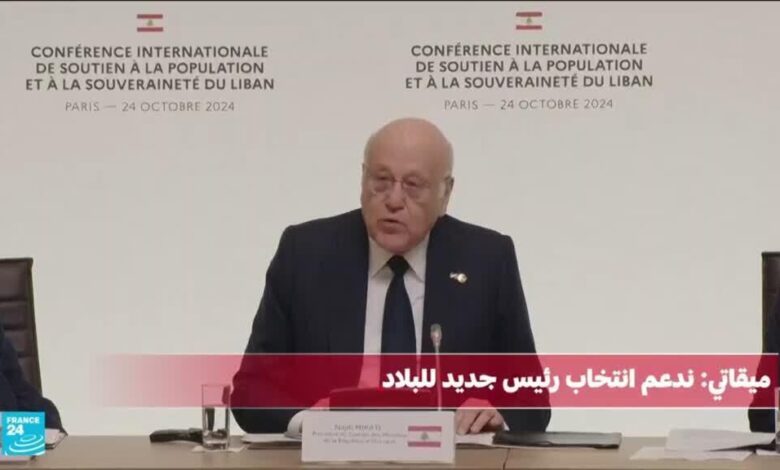 حض رئيس الوزراء اللبناني نجيب ميقاتي المجتمع الدولي على التحرك من أجل إبرام وقف لإطلاق النار في بلاده حيث تتصاعد المواجهة المفتوحة بين إسرائيل وحزب الله، وذلك في كلمة الخميس أمام مؤتمر دولي في باريس لدعم بيروت.