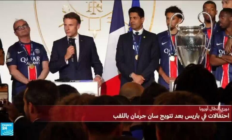 خصص الرئيس الفرنسي إيمانويل ماكرون الأحد استقبالا رسميا لفريق باريس سان جرمان بقصر الغليزيه، احتفاء بتحقيقه إنجازا غير مسبوق وتتويجه بلقب دوري أبطال أوروبا على حساب إنتر ميلان الإيطالي. وخلال كلمة القاها بالمناسبة، أشاد ماكرون بأداء المدرب الإسباني لويس إنريكي وبمستوى لاعبي النادي الباريسي. من جهة أخرى، أشار الرئيس الفرنسي إلى بعض أعمال العنف والشغب التي تخللت الاحتفالات، مشددا في هذا السياق على ألا شيء يمكن أن يبرر “ما حدث في الساعات الأخيرة” مضيفا أن “الأمة في حداد” إثر مقتل شخصين اثنين.