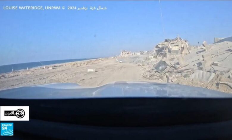 المتحدثة باسم وكالة الأمم المتحدة لإغاثة وتشغيل اللاجئين الفلسطينيين الأونروا صورت فيديو أوائل شهر نوفمبر الماضي بعد أن نجح الفريق التابع للأمم المتحدة في الوصول إلى شمال غزة ، يظهر الواجهة البحرية للقطاع بعد عام ونصف من القصف الإسرائيلي.لويز ووتردج، المتحدثة باسم الأونروا هي من بين الأشخاص القلائل الذين تمكنوا من بلوغ هذه المنطقة التي أصبحت ساحة حرب والتي أخليت تقريبا من سكانها.