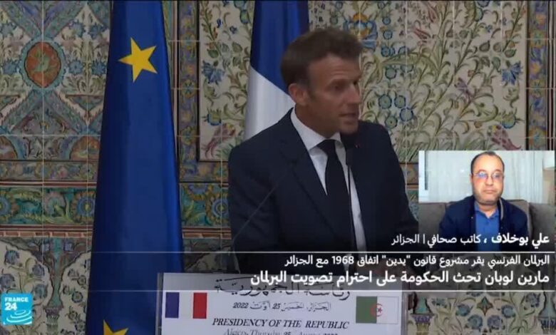 جعل حزب التجمع الوطني من الاتفاقيات الفرنسية الجزائرية المبرمة في كانون الأول/ديسمبر 1968 إحدى قضاياه الرئيسية، ودعا في مناسبات عدة إلى إدانتها. وفي حين يفتقر القرار الذي اعتُمد الأربعاء إلى القوة التشريعية، فقد طلبت زعيمة حزب التجمع الوطني مارين لوبن من الحكومة “أخذ هذا التصويت في الاعتبار”، والذي يدعو إلى إدانة الاتفاقية التي تكرّس للجزائريين بنودا محددة بشأن الهجرة والإقامة في فرنسا.