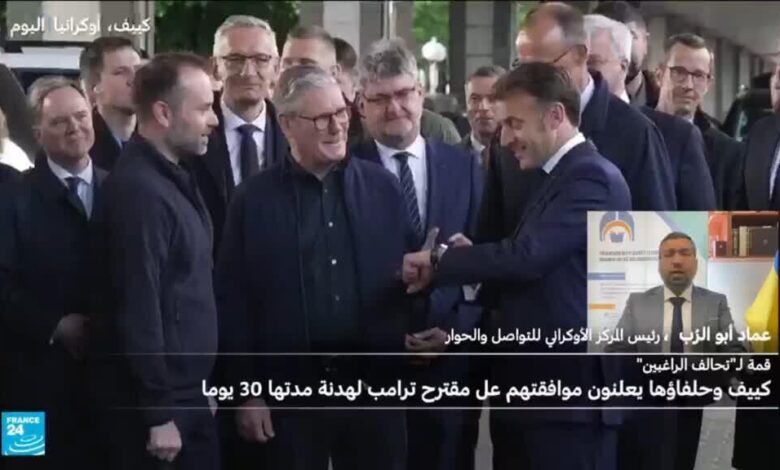 يشارك الرئيس الفرنسي إيمانويل ماكرون والمستشار الألماني فريدريش ميرتس ورئيس الوزراء البريطاني كير ستارمر السبت بكييف، في قمة لقادة “تحالف الراغبين” بغية تقديم الدعم لأوكرانيا. يأتي ذلك تزامنا مع دعم كل من بريطانيا وفرنسا مقترح الرئيس الأمريكي دونالد ترامب لوقف إطلاق نار غير مشروط لمدة 30 يوما في أوكرانيا. في هذا السياق، دعا ماكرون إلى “محادثات مباشرة” بين البلدين في حال التوصل إلى اتفاق لوقف إطلاق، فيما هدد ميرتس روسيا بعقوبات أكثر تشددا إذا رفضت المقترح.