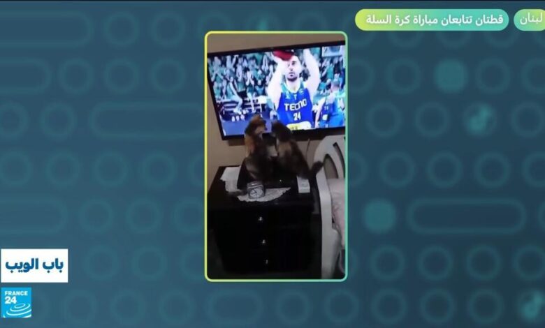 لبنان.. قطتان تتابعان مباراة كرة السلة!