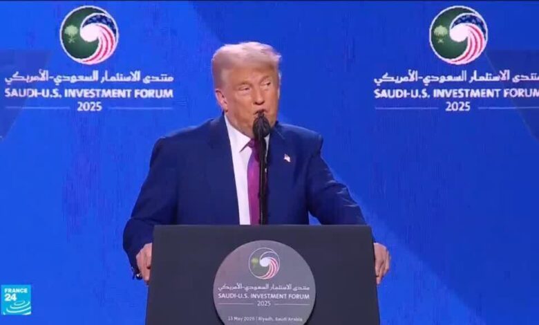 قال الرئيس الأمريكي دونالد ترامب خلال منتدى الاستثمار السعودي الأمريكي بالرياض”سآمر برفع العقوبات عن سوريا لمنحها فرصة للتألق… حان وقتتألقها. سنوقف جميع (العقوبات). حظا سعيدا يا سوريا، أظهري لناشيئا مميزا للغاية”.