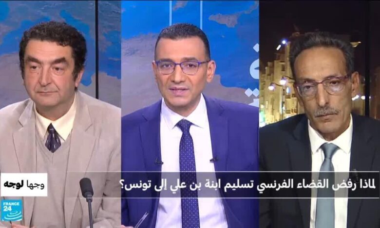نتوقف في فقرة “وجها لوجه” عند رفض القضاء الفرنسي أن يسلّم إلى تونس حليمة بن علي، الإبنة الصغرى للرئيس التونسي الأسبق زين العابدين بن علي وفق قرار صادر عن محكمة الاستئناف في العاصمة الفرنسية. مع ضيفيّ البرنامج: الكاتب الصحفي خالد كرونة، والمحامي لدى التعقيب في تونس والمحامي لدى المحكمة الإفريقية لحقوق الإنسان والشعوب والمحكمة الجنائية الدولية إبراهيم بلغيث.