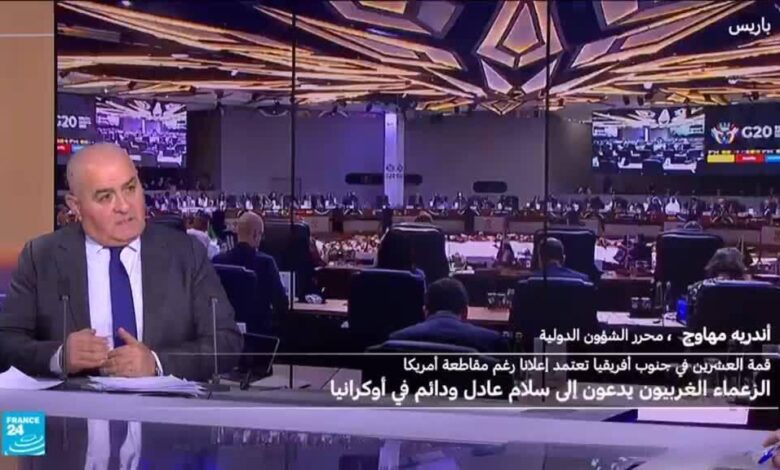 بغياب الولايات المتحدة الاميركية انعقدت قمة مجموعة العغشرين في جوهانتسبورغ عاصمة افريقيا الجنوبية تحت شعار التضامن والمساواة والاستدامة . وهذه هي المرة الاولى التي تستضيف فها دولة افريقية اعمال هذه المجموعة ،التي انشأت في العام 1999 على اقر الازمة المالية في اسيا ، بهدف تامين الاستقرار المالي والتنمية في العالم . اندريه مهاوج يشرح اسباب غياب الولايات المتحدة ومفاعيله .