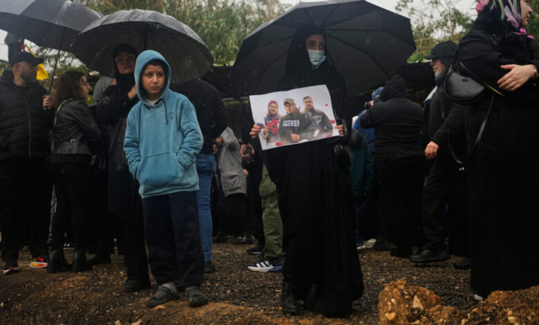 مئات الأشخاص يشيعون ثلاثة صحافيين في بيروت قتلوا جراء غارة إسرائيلية بجنوب لبنان