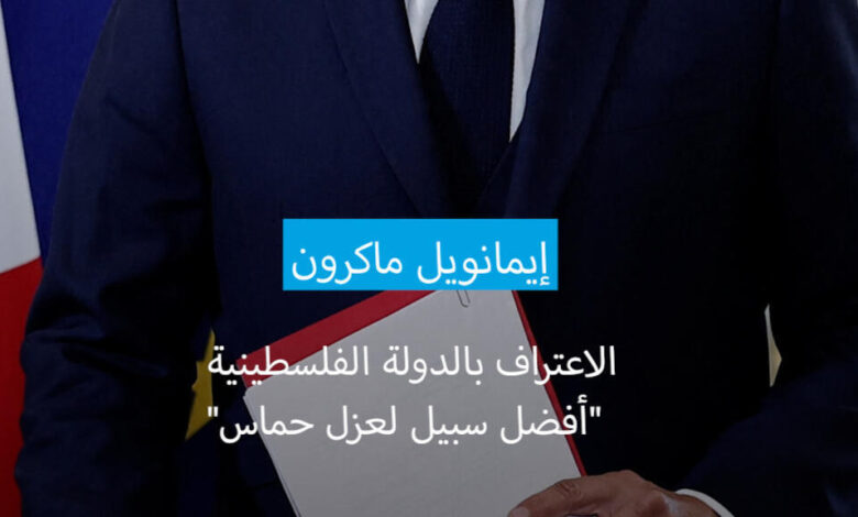 ماكرون: الاعتراف بدولة فلسطينية هو “أفضل طريقة لعزل حماس”