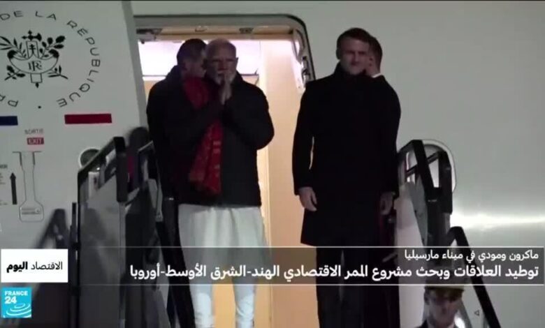 في فقرة الاقتصاد اليوم، نتابع مع وسيم الدالي الرهانات الاقتصادية لزيارة الرئيس الفرنسي إيمانويل ماكرون ورئيس الوزراء الهندي ناريندرا مودي إلى ميناء مارسيليا، وذلك لبحث مشروع الممر الاقتصادي الهند-الشرق الأوسط-أوروبا، زيارة تشمل أيضا إعلانات تخص التعاون الفرنسي الهندي في مجال الطاقة النووية المدنية وتفتح باب المناقشات بشأن التعاون الدفاعي بين البلدين.