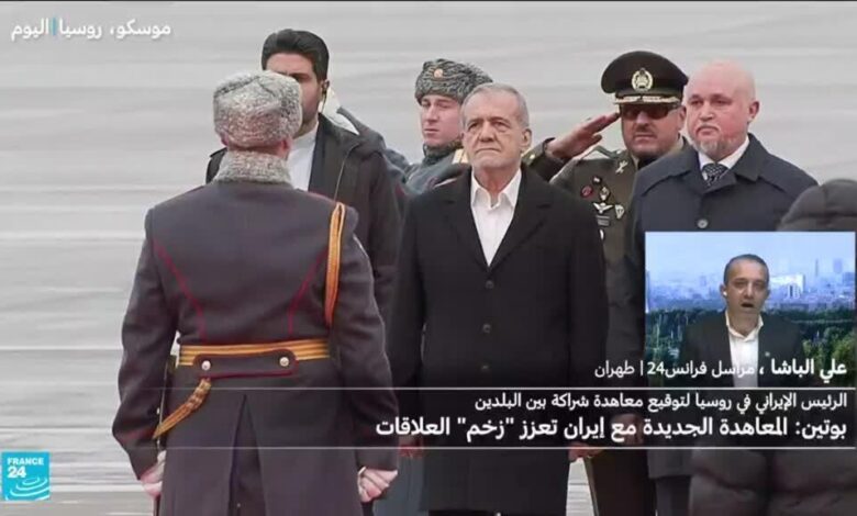 وقع الرئيسان الروسي فلاديمير بوتين والإيراني مسعود بزشكيان اتفاقية شراكةاستراتيجية شاملة اليوم الجمعة خلال زيارة يقوم بها بزشكيانلموسكو.