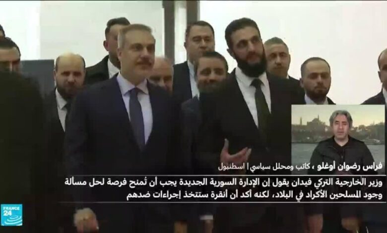 قال وزير الخارجية التركي هاكان فيدان الجمعة إنه ينبغي منح الإدارة السورية الجديدة فرصة لحل مسألة وجود المسلحين الأكراد في البلاد، لكنه أكد أن أنقرة ستتخذ إجراءات ضدهم إذا لم يحدث ذلك. وأضاف فيدان في مؤتمر صحفي في أسطنبول أن من الخطأ تصنيف معركة بلاده ضد المسلحين الأكراد على أنها معركة ضد الأكراد، مشيرا إلى أن أنقرة تقيّم في الوقت الراهن وجودها في سوريا في ضوء الوضع الجديد هناك.